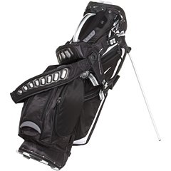 The GridIron Stand Bag features a 7-way top, including a raised putter well and full length dividers, just the right amount of organization for a stand bag user. It's lighweight (under 5 pounds) with an Izzo® licensed dual strap and sculpted hip pad allowing for easy and comfortable carrying. The GridIron Stand Bag fulfills your storage needs with 5 front-facing zippered pockets (including a velour-lined valuables pocket) and towel ring with accessory strap for putter cover or golf glove. Rugged 840D nailhead nylon construction provides protection from wear, tear and the elements. Molded grab handle with lower assist handle for easy handling. Other features include removable zippered rain hood, umbrella holder with drawstring, insulated beverage sleeve and centrally located tee holder. The GridIron Stand Bag is embellished with 4 embroidered collegiate trademarks.